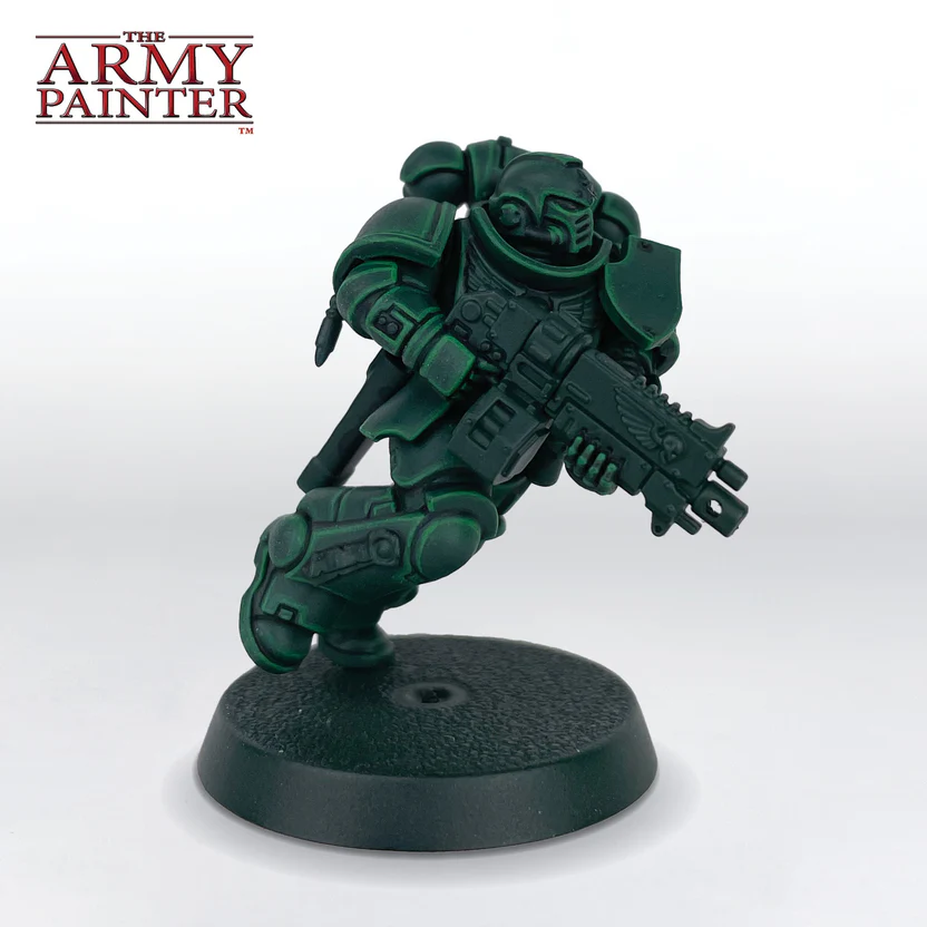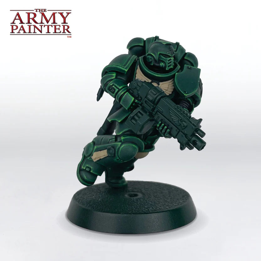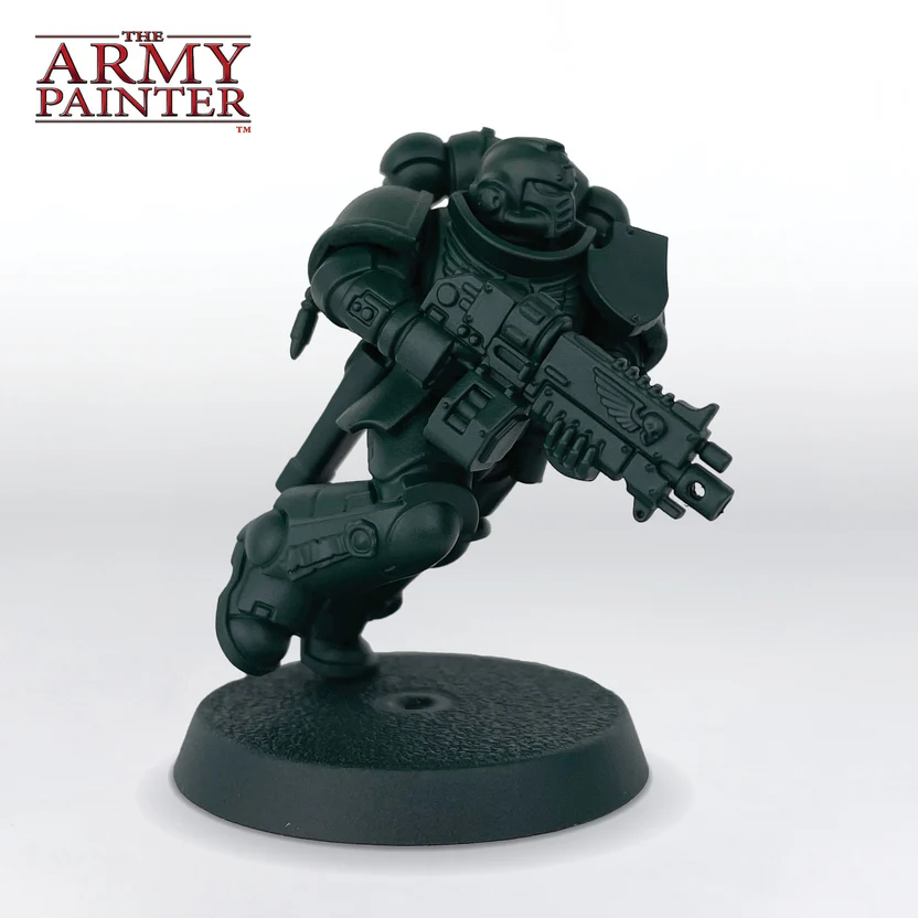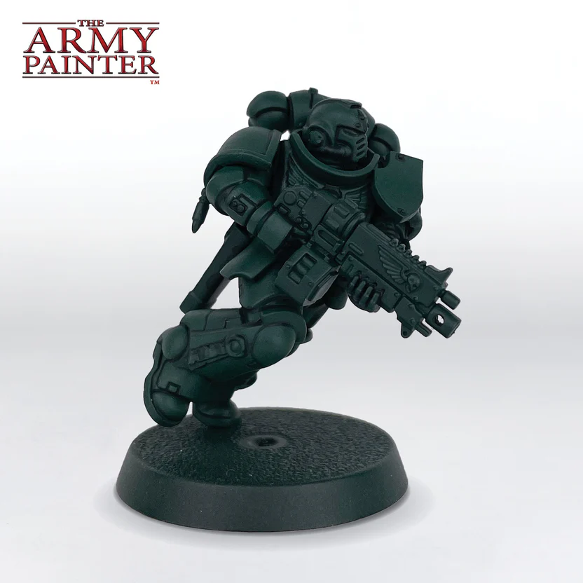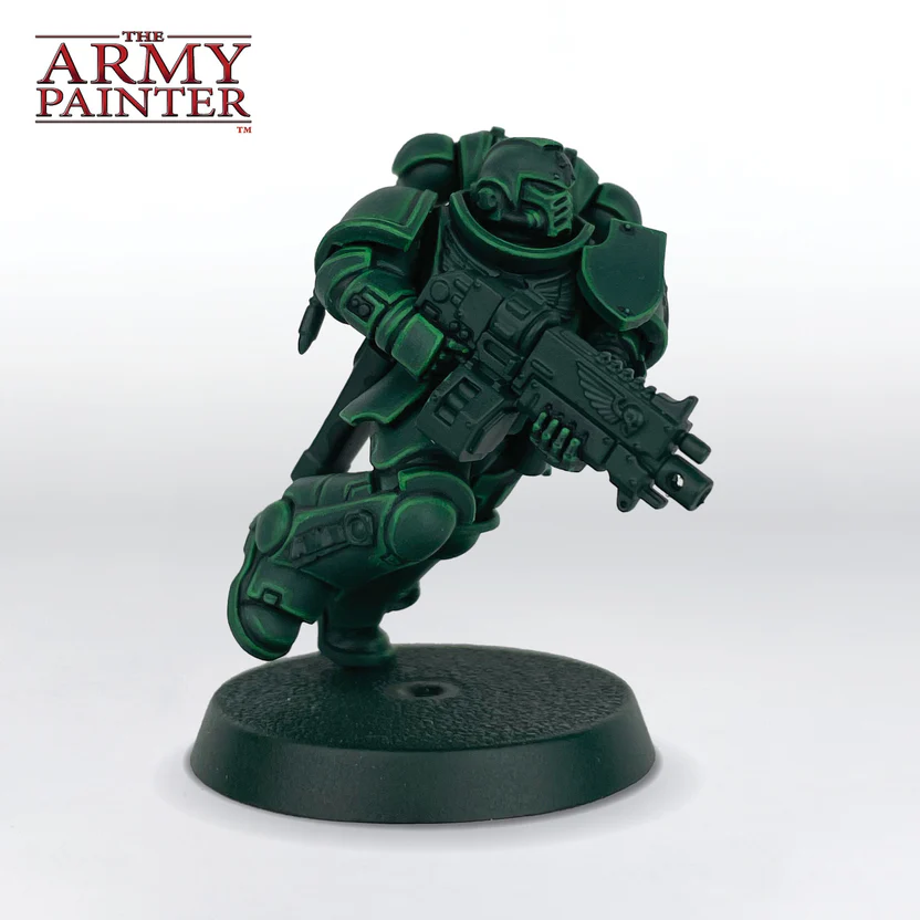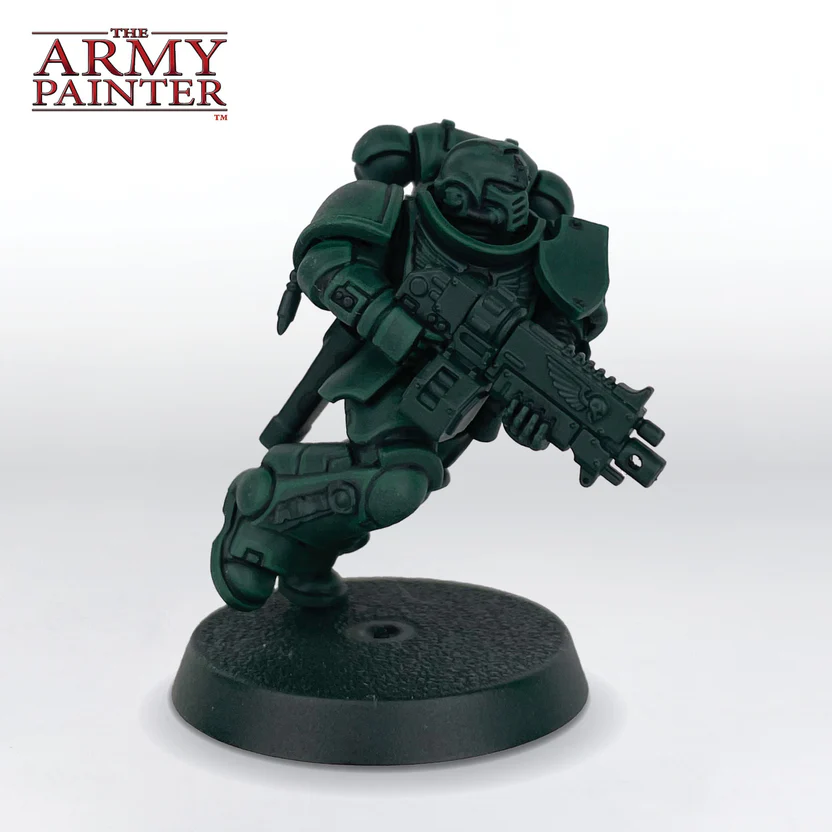 Comencé imprimando el modelo con el Colour Primer Angel Green, y luego retoqué cualquier área que no se hubiera cubierto con el Warpaints Fanatic Angel Green. Ten en cuenta que, aunque los colores coinciden, el acabado es diferente, ya que la pintura acrílica tiene un acabado mucho más mate que el primer. Si planeas barnizar tu modelo al final, lo cual recomendamos, no habrá diferencia, ya que eso igualará el acabado. Apliqué una capa fina y rápida del Warpaints Fanatic por todo el modelo para obtener un acabado consistente mientras pintaba.