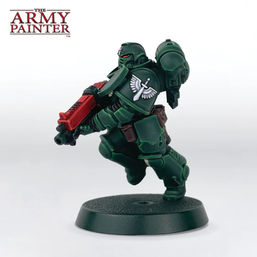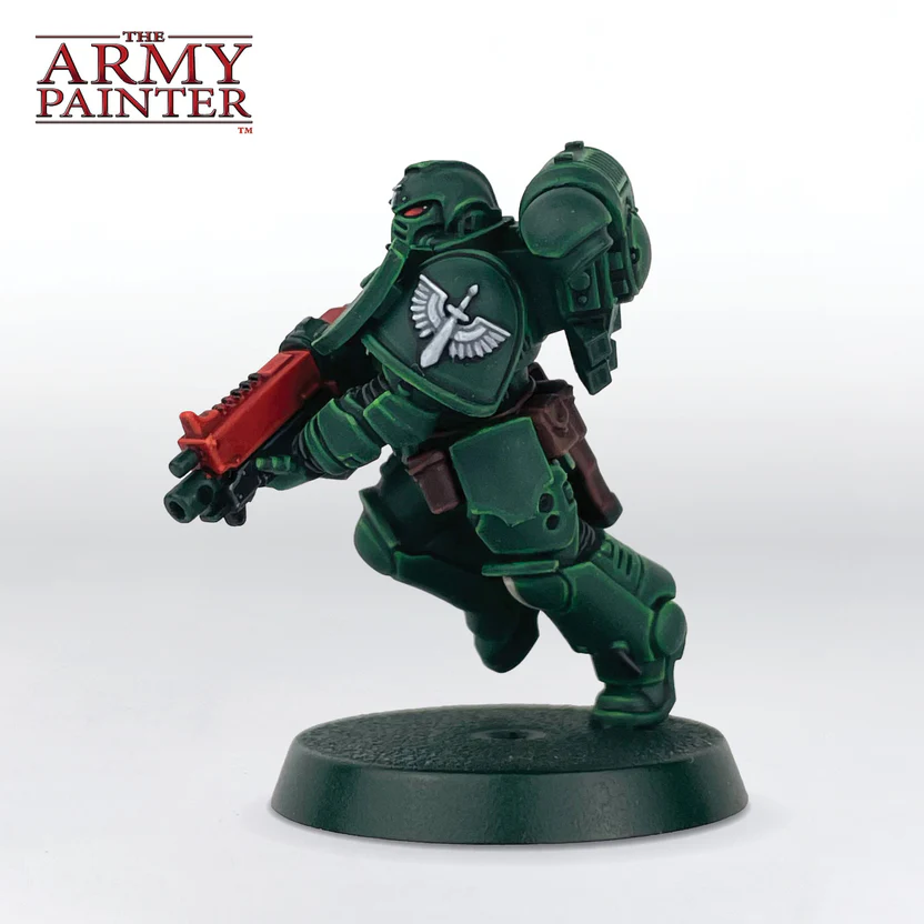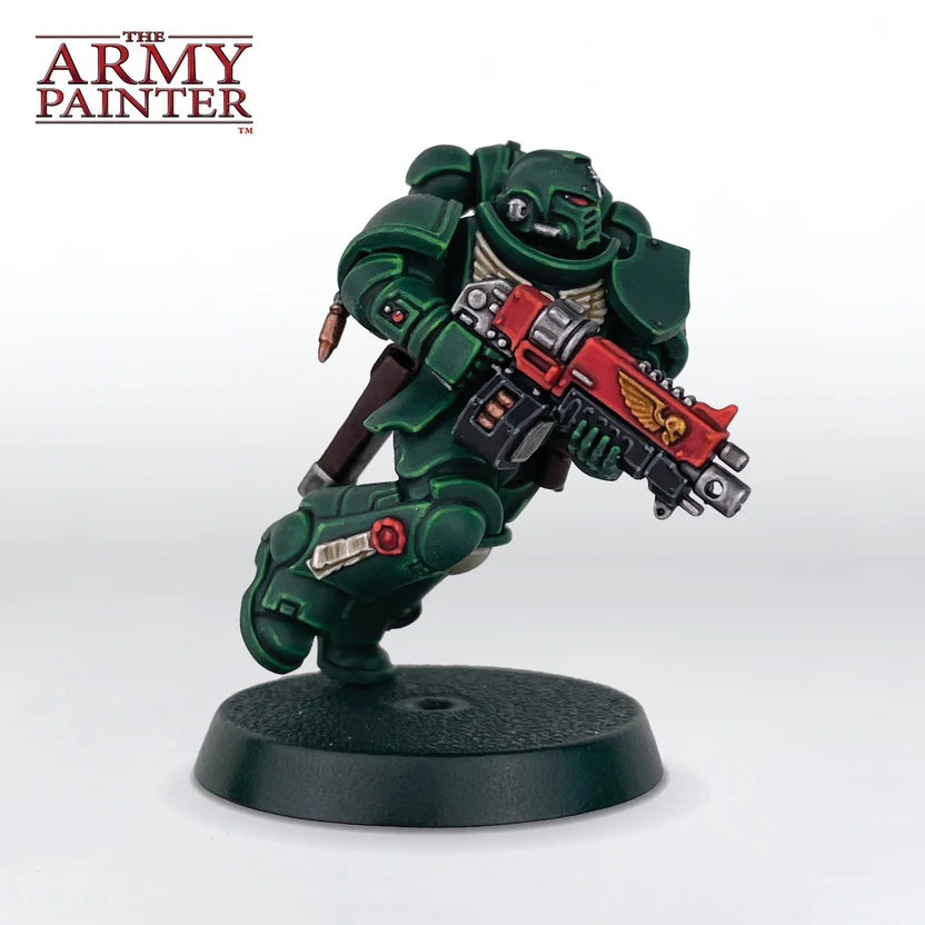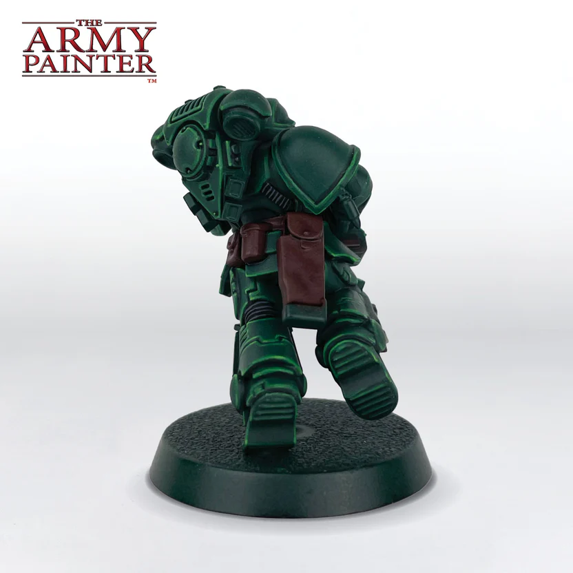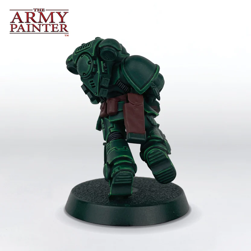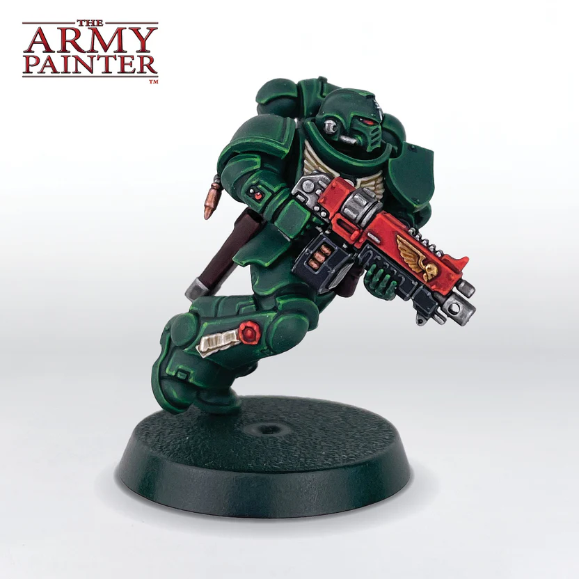Comencé imprimando el modelo con el Colour Primer Angel Green, y luego retoqué cualquier área que no se hubiera cubierto con el Warpaints Fanatic Angel Green. Ten en cuenta que, aunque los colores coinciden, el acabado es diferente, ya que la pintura acrílica tiene un acabado mucho más mate que el primer. Si planeas barnizar tu modelo al final, lo cual recomendamos, no habrá diferencia, ya que eso igualará el acabado. Apliqué una capa fina y rápida del Warpaints Fanatic por todo el modelo para obtener un acabado consistente mientras pintaba.
