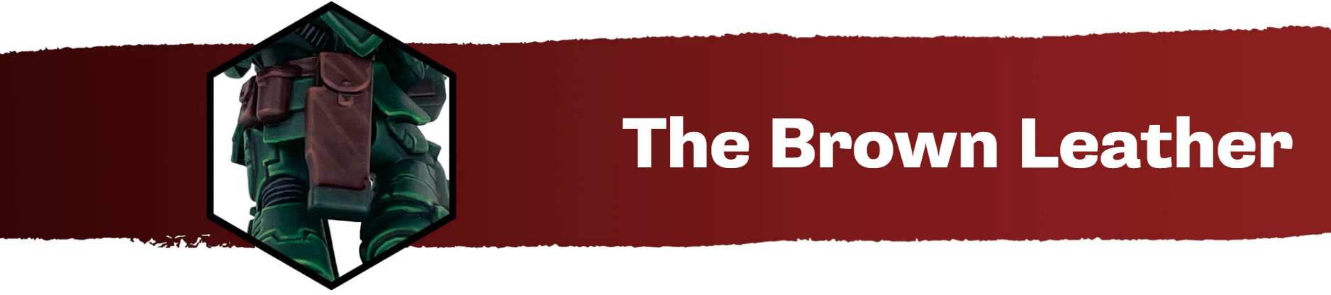 Todas las áreas de cuero de la miniatura se pintaron con una capa base de Warpaints Fanatic Oak Brown.