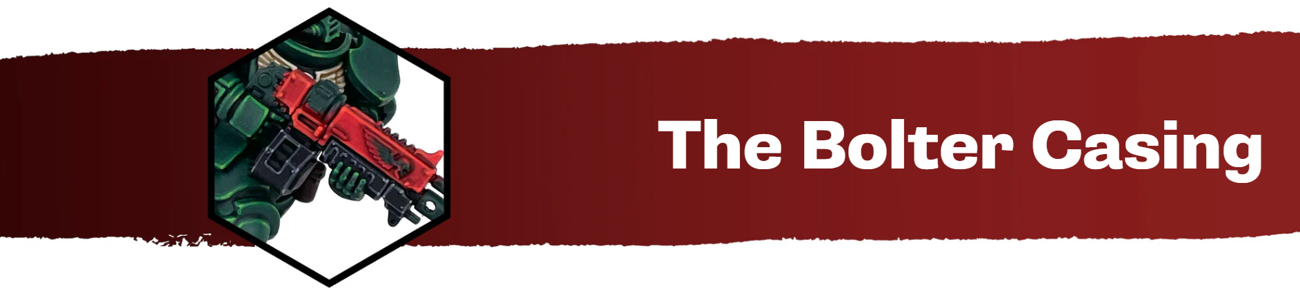 El símbolo del capítulo en la hombrera, así como la espada en el casco, se pintaron con una capa base de Warpaints Fanatic Uniform Grey.