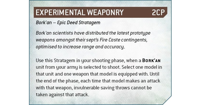 El sept T’au es el de los posterboys T’au, y su reliquia permite mejorar la armadura de sus comandantes: