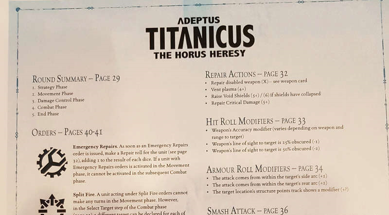 Aunque se dijo y se enseñó poco oficialmente sobre Adeptus Titanicus, y además en la AdeptiCon ya habían confirmado que se retrasará y no saldrá este año, en el Warhammer Fest 2017 se pudieron ver dos hojas de referencia con reglas: