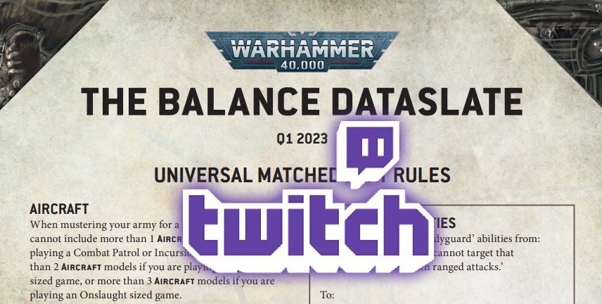 Cada jueves tenemos una charla en Twitch que es un bonus track del podcast de la semana o de cualquier otro tema del mundo warhammero. Y hoy toca analizar el ajuste de reglas de juego equilibrado que afecta a casi todos los ejércitos de Warhammer 40k.