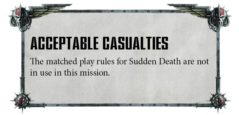 12 misiones nuevas para juego equilibrado, como el año pasado. 6 de Guerra Eterna y 6 de Vórtice. Lo más llamativo es que varias de ellas tienen la regla Bajas Aceptables que evita que se pierda la partida por asolación si eliminan a todas las unidades de un jugador. Es decir, al igual que ocurre por ejemplo en el sistema de torneos ITC, si se consiguen en los primeros turnos muchos puntos es posible que ser asolado en el penúltimo turno, o el último, pueda ser igualmente una victoria.
