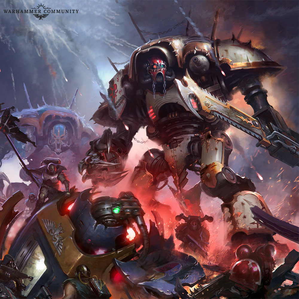 Los Caballeros del Caos, Chaos Knights o CKs tienen ya su primer avance oficial de reglas. Tanto las casas Iconoclastas como las Infernales tienen reglas de facción, estratagemas y reliquias.
