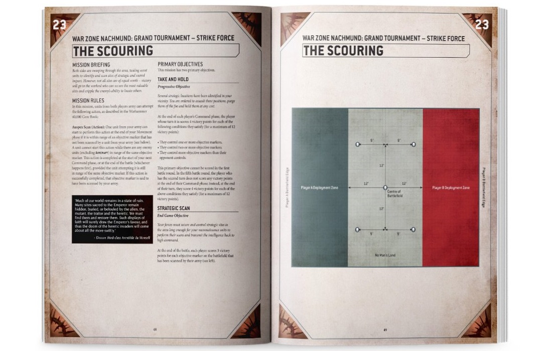 Los propios objetivos secundarios se han revisado y varios de ellos han cambiado. Además, dos de los tres deben ser del pack de misiones, evitando que los Marines Espaciales puedan escoger uno de su Codex y otro de su Suplemento.