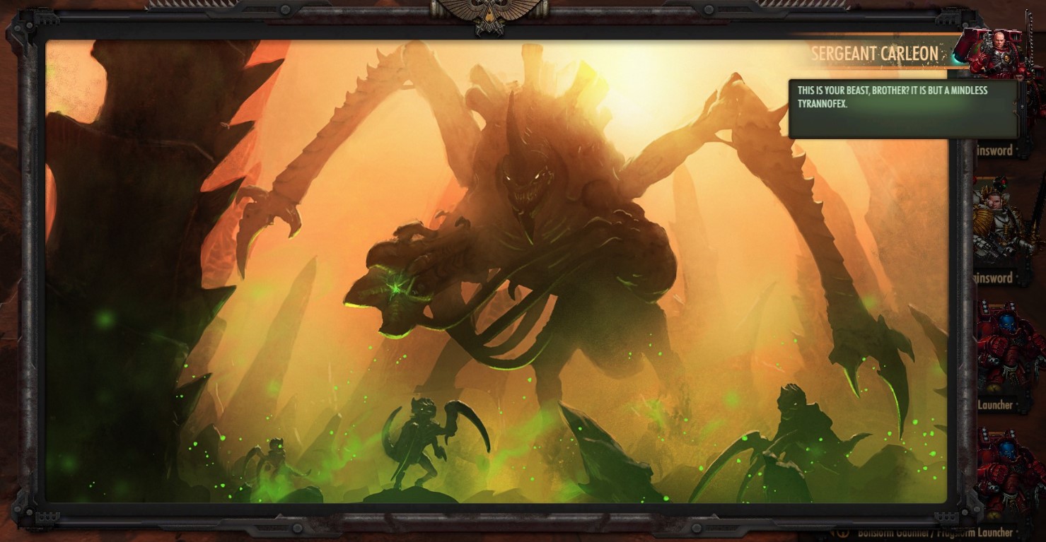 Las buenas gentes de Slitherine han tenido a bien pasarnos una clave con más misiones disponibles, y el inicio del modo historia. En este empezamos con el Sargento Carleon, y poco a poco vamos encontrando a otros héroes, como el Sacerdote Sangriento Aeturo, el Tecnomarine Croginax y el Bibliotecario Dreadnough Quindar. Estos además, entre misiones, podrán conseguir habilidades para mejorarse a si mismos, y a tropas relacionadas.