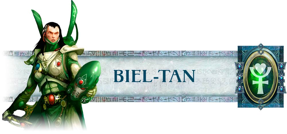 Biel-Tan ha pasado una época dura últimamente, con su Mundo Astronave partido por un asalto de demonios de Slaanesh y el despertar del dios Aeldari de la muerte, Ynnead. Pero eso no ha disminuido el espíritu guerrero del más beligerante de los Mundos Astronave, y en el nuevo Codex se mantienen feroces y capaces de sacar el mejor partido de los Guerreros Especialistas y las armas shuriken.