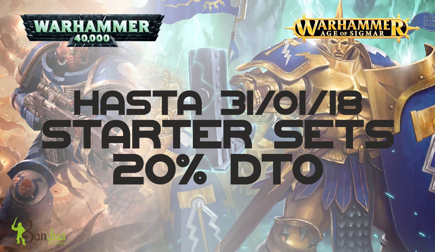 Desde Bandua Wargames nos informan de sus particulares rebajas de enero, consistentes en un 20% de descuento en todas las cajas de inicio, cajas de Battleforces y cajas Start Collecting hasta el 31 de enero.