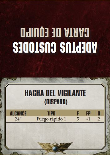 Y junto al trasfondo traducido, la gente de la Cruzada Hispanicus nos trae también las cartas de unidades y equipo del Adeptus Custodes.