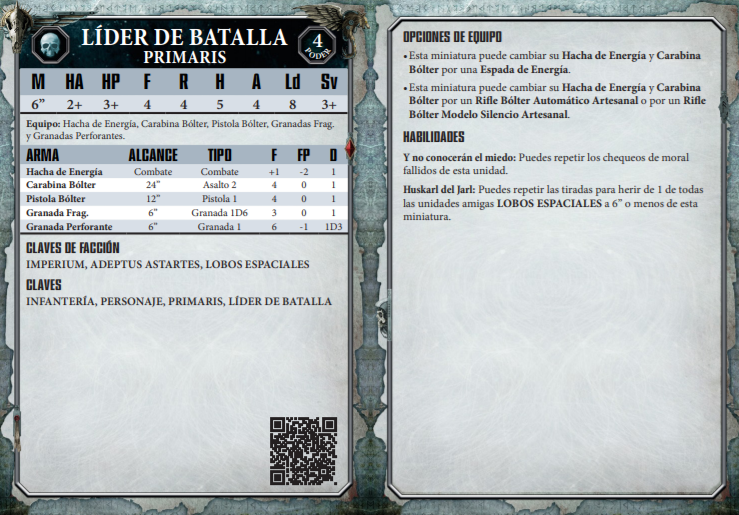Cartas de unidades y equipo de los Lobos Espaciales para descargar