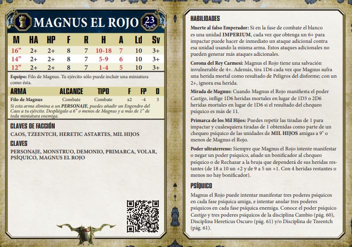 Y junto al trasfondo traducido, la gente de la Cruzada Hispanicus nos trae también las cartas de unidades y equipo de los Mil Hijos.