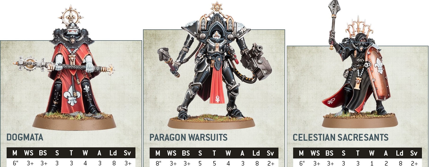 Las temidas Dogmatas van equipadas con una buena maza a la que acompañan con la habilidad de otorgar (o mejorar) Objetivo Asegurado a una unidad, además de cantar himnos de batalla, como ya hemos visto anteriormente.