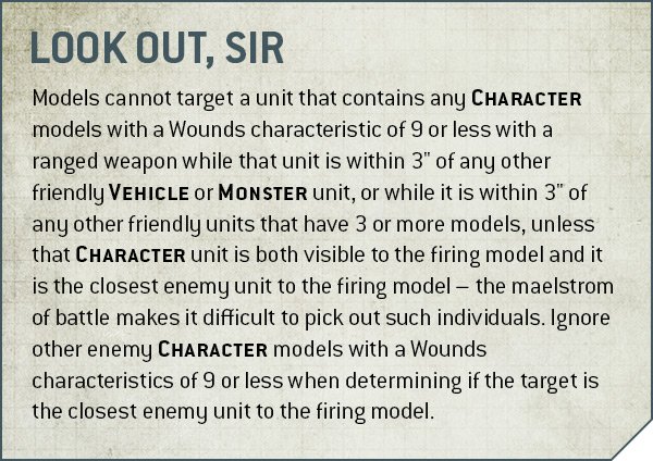 Para empezar, la nueva regla de ¡Cuidado, Señor! requiere que los Personajes tengan que estar a 3″ o menos de unidades amigas para estar protegidos: