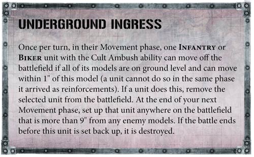 El taladro tiene varias reglas, la primera y más interesante, la posibilidad de enterrar a una unidad aliada que esté a nivel del suelo, y a más de 1” del enemigo