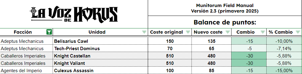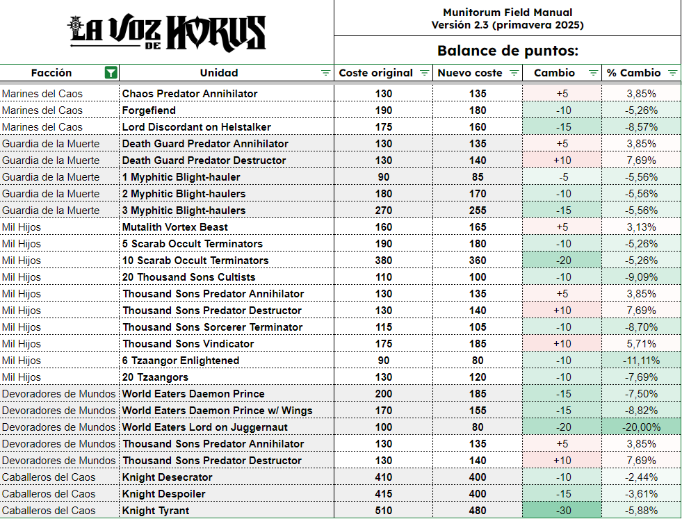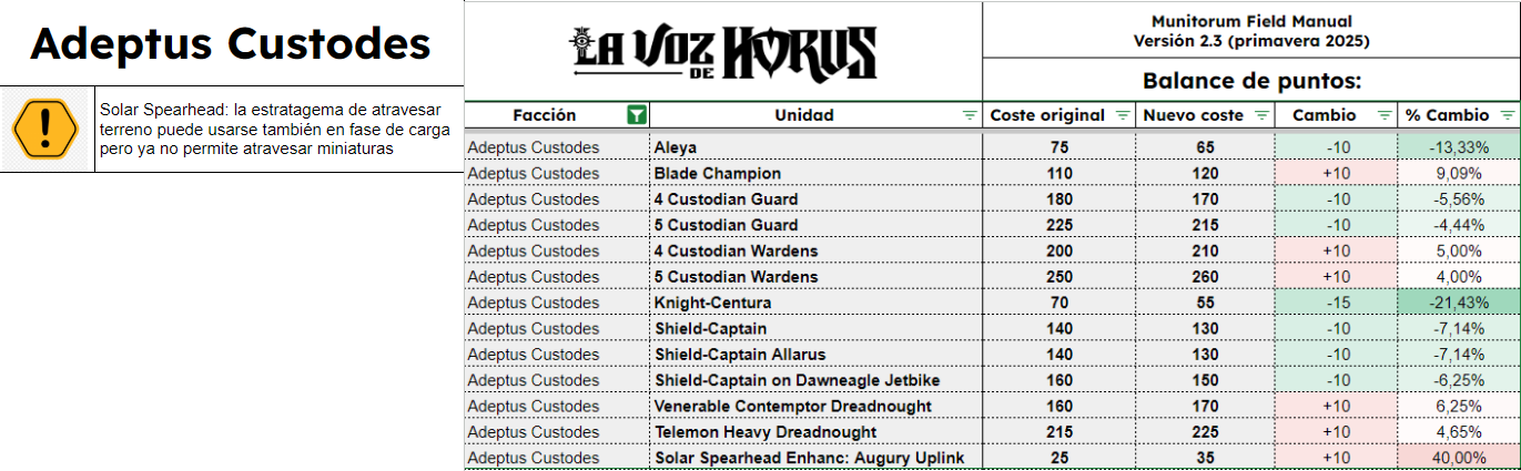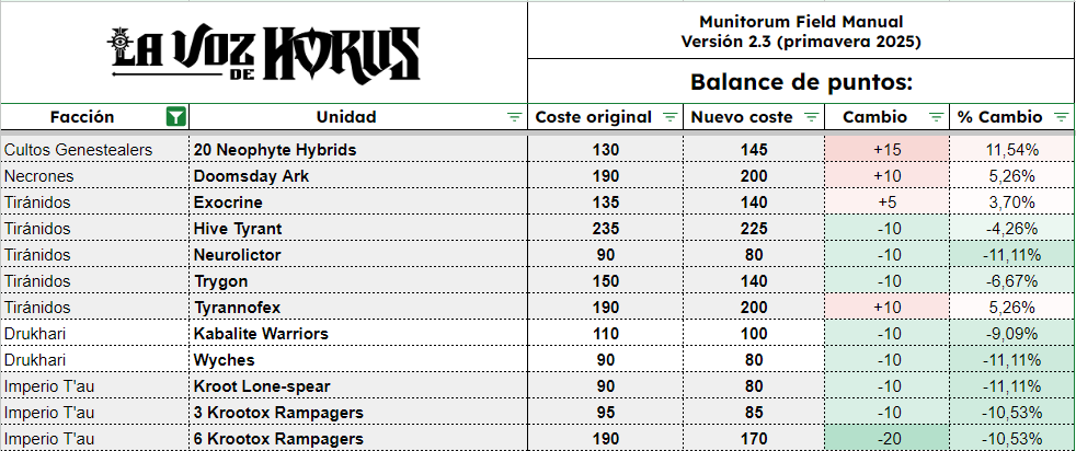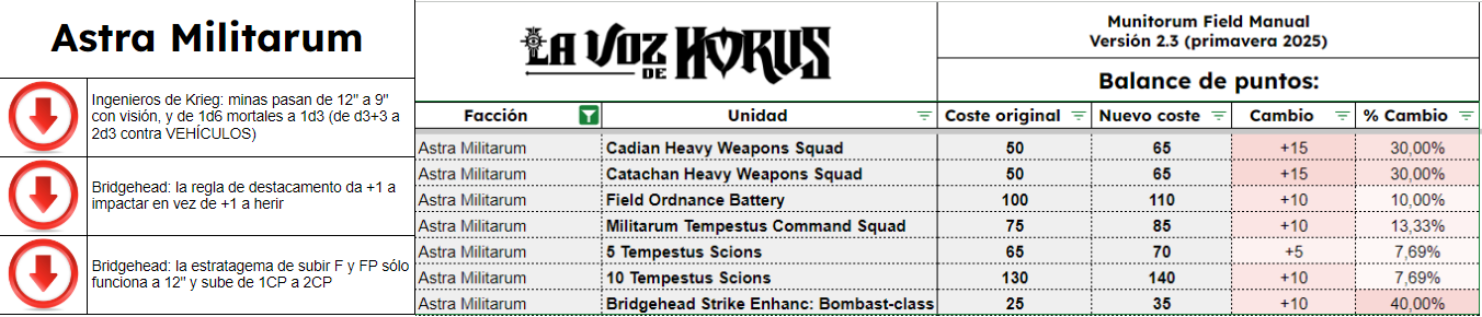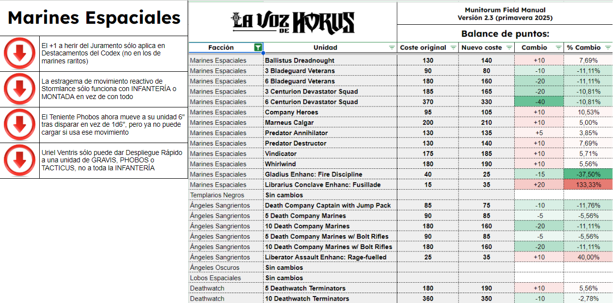 El Manual De Campo Munitorum 2.3 es el documento que define el coste en puntos de cada unidad de Warhammer 40k. Junto a él está el documento de Balance Dataslate y muchos otros pequeños ajustes en diversos documentos, todos reflejados también en la app móvil oficial de Warhammer 40k. Os contamos qué cambia y cuánto, en completo detalle, aquí en La Voz de Horus.
