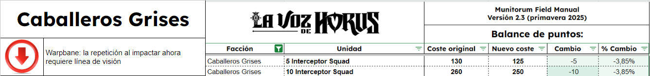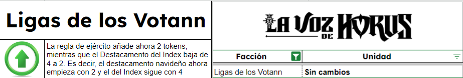 Para terminar, las Ligas de los Votann no tienen cambios de puntos pero sí en su regla de ejército: