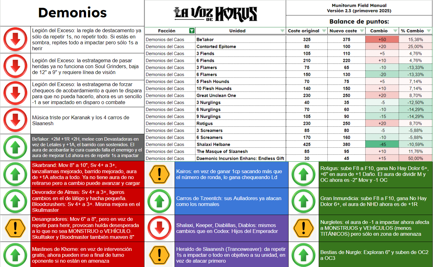 Aquí os dejamos los cambios de reglas y puntos agrupados por facción, empezando por las de Caos porque uno de los grandes cambios de este ajuste es la remodelación del Index Demonios para adaptarlo a los próximos Codex caóticos: