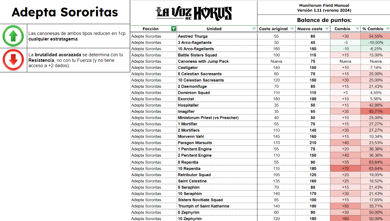 Están agrupados por Facción, y empezamos por las Sororitas y los Cultos Genestealer porque estos son ya los puntos oficiales para utilizar sus nuevos Codex: