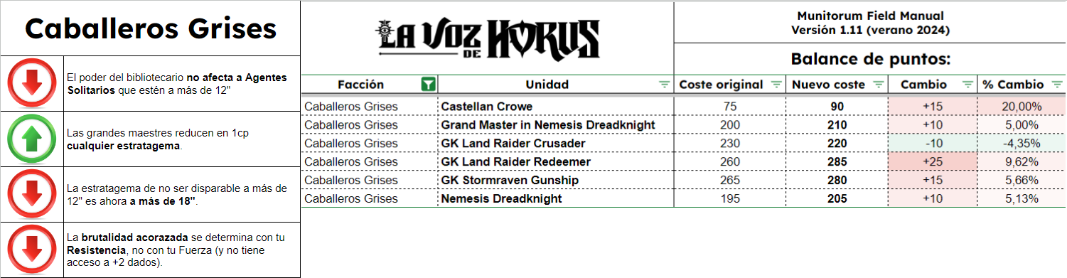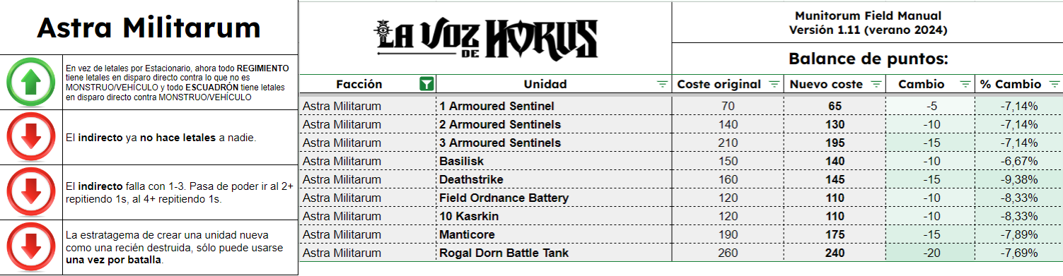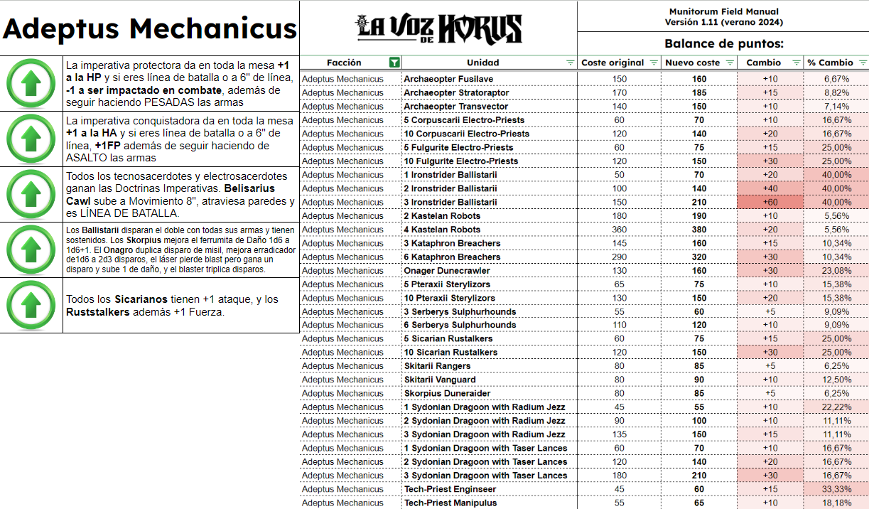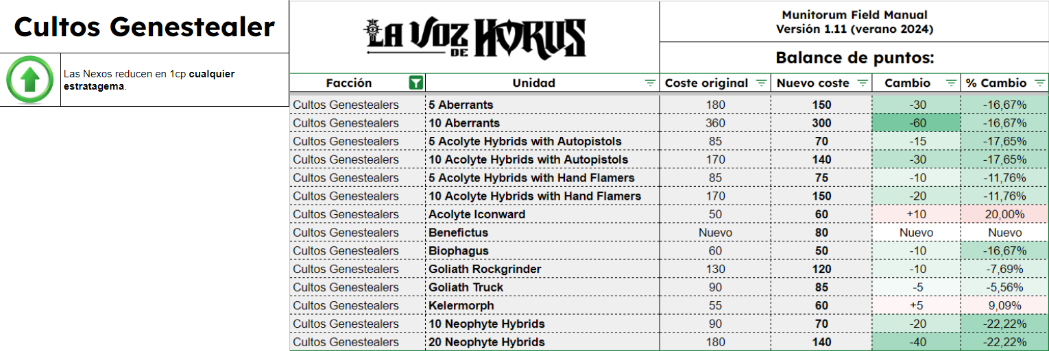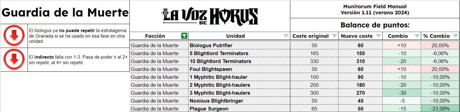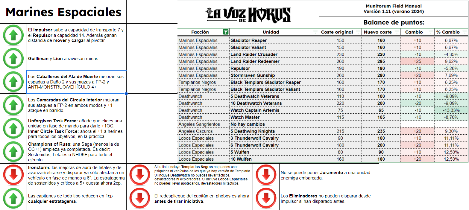 El Manual De Campo Munitorum 1.11 es el documento que define el coste en puntos de cada unidad de Warhammer 40k. Junto a él está el ajuste de equilibrio o balance del juego, el documento de FAQ y el Companion para que los organizadores de torneos puedan usar Nexo Pariah. Os contamos qué cambia y cuánto, en completo detalle, aquí en La Voz de Horus.