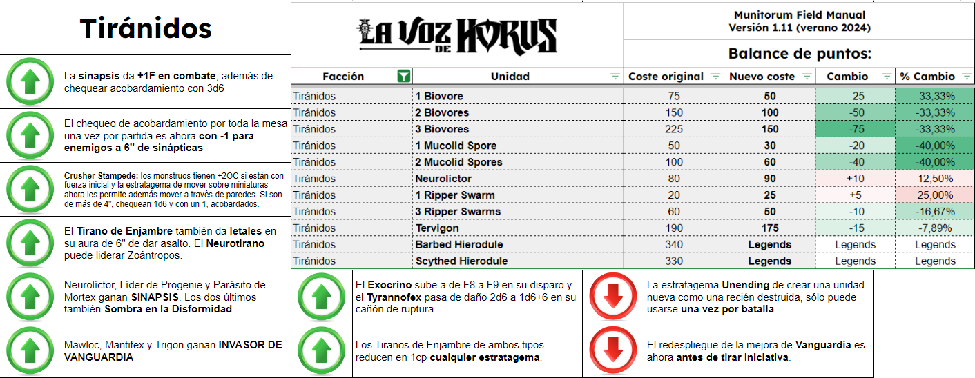 El Manual De Campo Munitorum 1.11 es el documento que define el coste en puntos de cada unidad de Warhammer 40k. Junto a él está el ajuste de equilibrio o balance del juego, el documento de FAQ y el Companion para que los organizadores de torneos puedan usar Nexo Pariah. Os contamos qué cambia y cuánto, en completo detalle, aquí en La Voz de Horus.