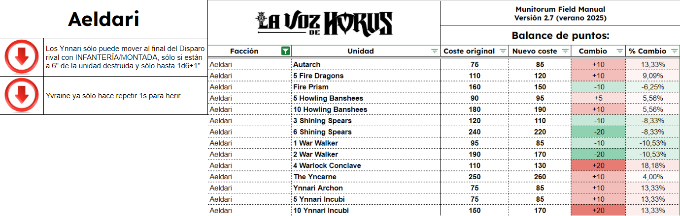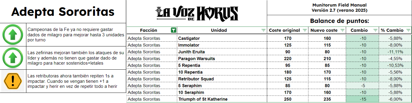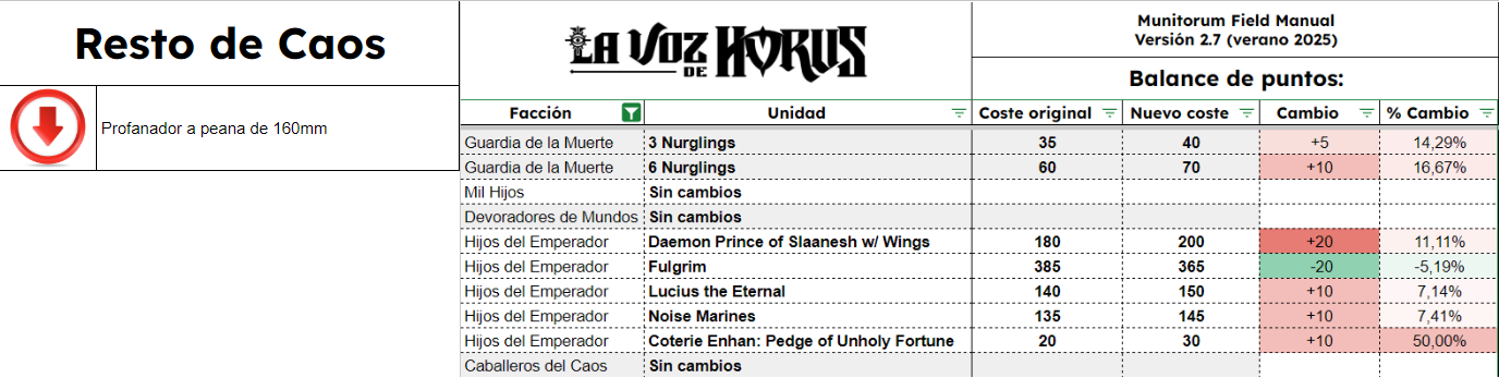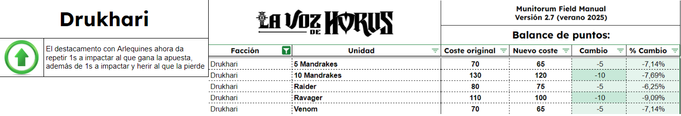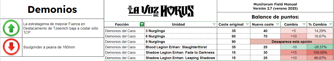 Aquí os dejamos los cambios de reglas y puntos agrupados por facción: