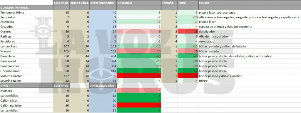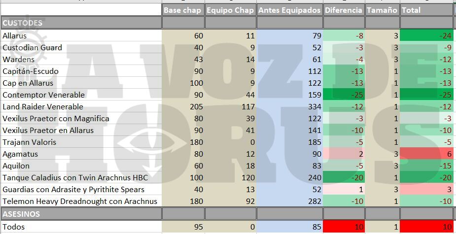 Puede que haya algún que otro gazapo, o que algunas unidades falten (como puede ser el caso de algunas de Forgeworld). Si detectáis que falta algo relevante, decidlo por los comentarios y lo iremos añadiendo.