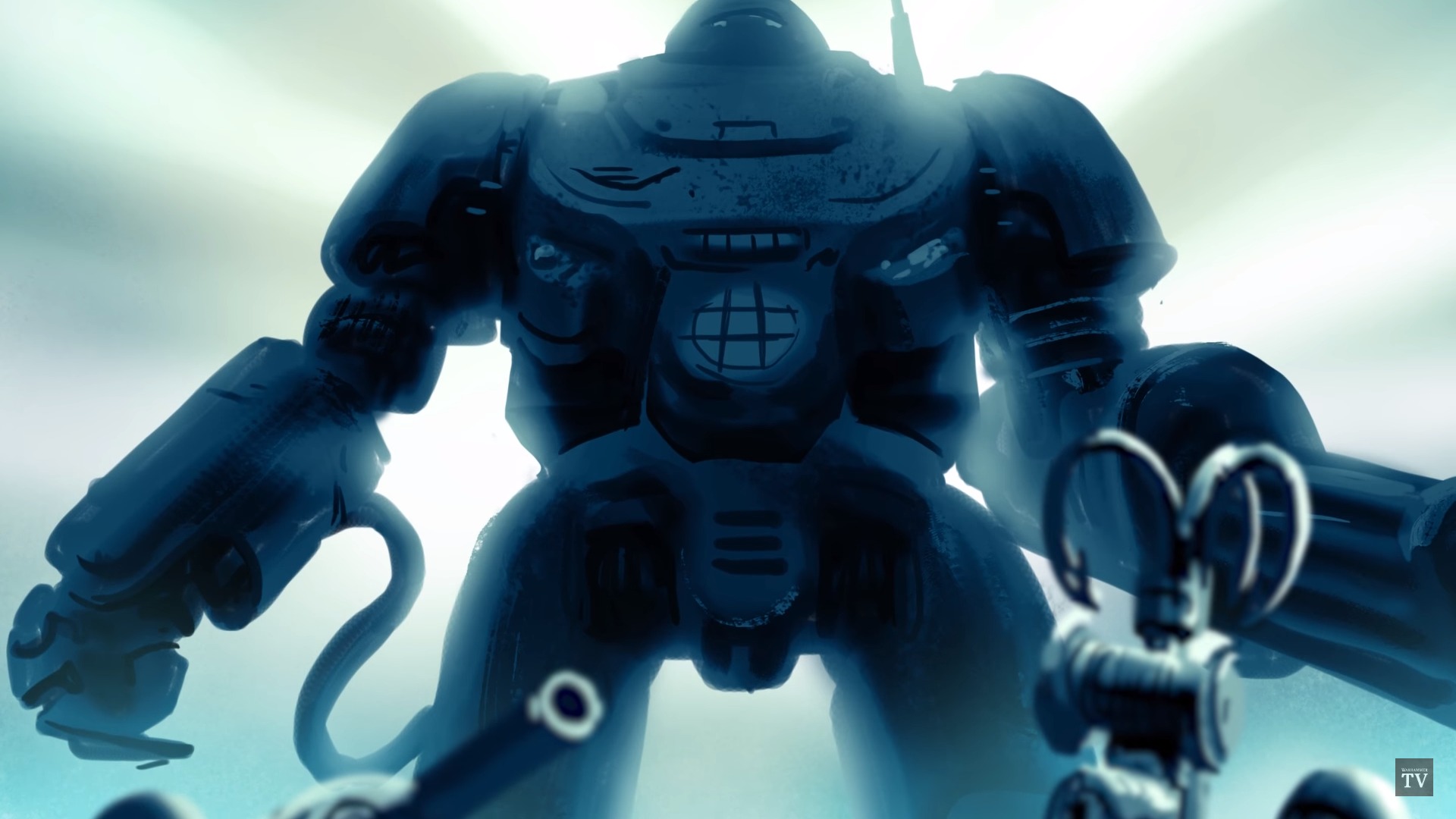 Tras ellos, un robot mayor en tamaño que el resto del grupo: