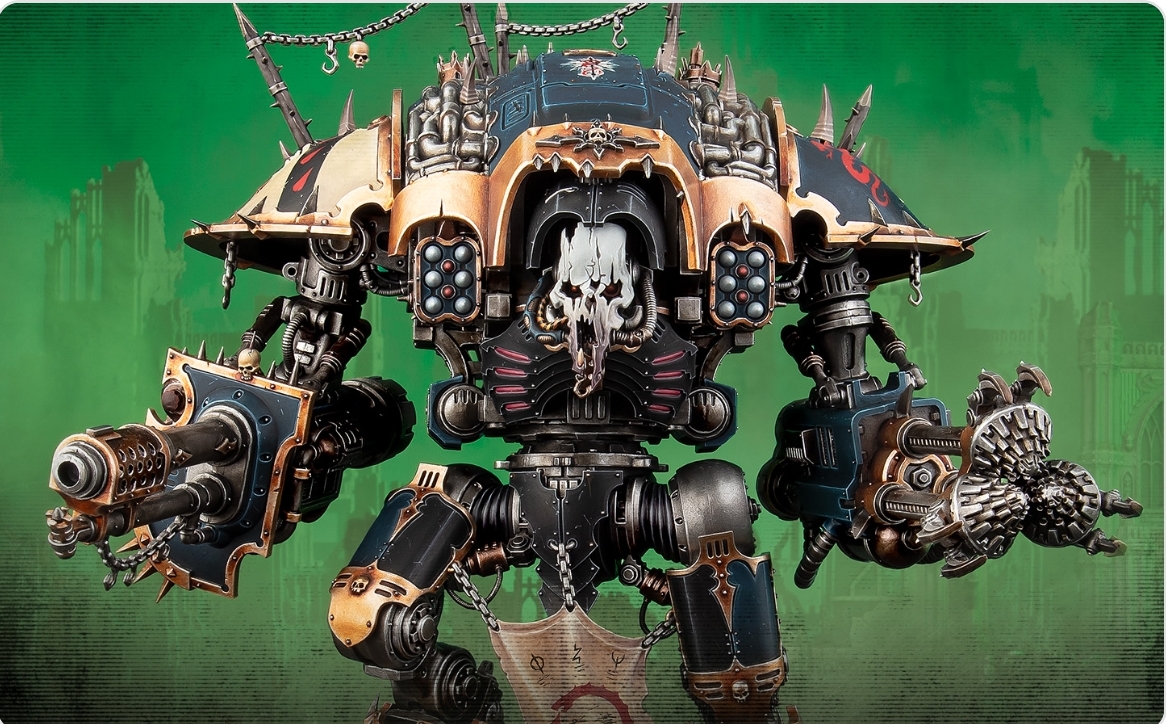 El nuevo Caballero del Caos es el modelo Ruinator, que llama la atencion por su lanzallamas, sus misiles antimarines y su excéntrica arma de combate cuerpo a cuerpo.