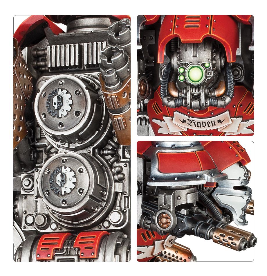 Este kit está compuesto por 141 piezas, e incluye una peana ovalada Citadel de 170 x 105 mm y una hoja de calcomanías de los Caballeros Imperiales.