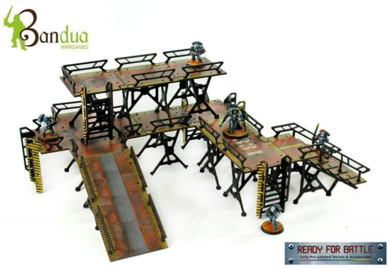 Además el pack de premios incluye la escenografía prepintada de Bandua modelo Industry of Murder con pasarelas ideales para juegos como Kill Team o Necromunda:
