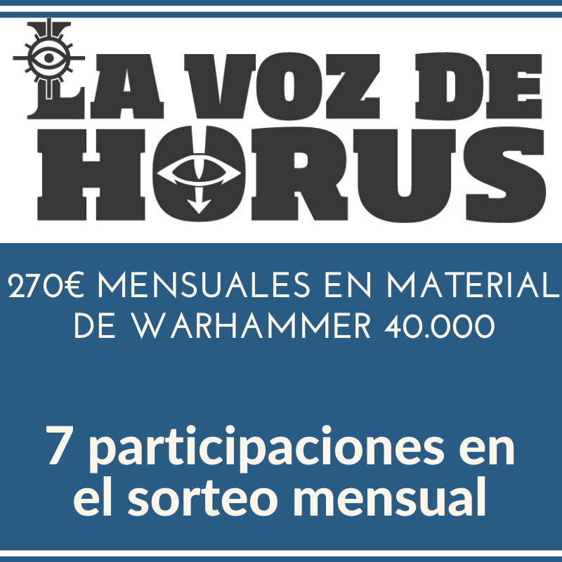 ¿Escuchas nuestro podcast y nos lees a diario? ¿Te gustaría apoyar nuestro proyecto? Te ofrecemos una forma interesante de hacerlo: suscríbete al sorteo mensual que organiza La Voz de Horus. ¡330€ en material de Warhammer 40.000 al mes! Y hasta este mes de diciembre, de forma excepcional, serán… ¡360€ en material!