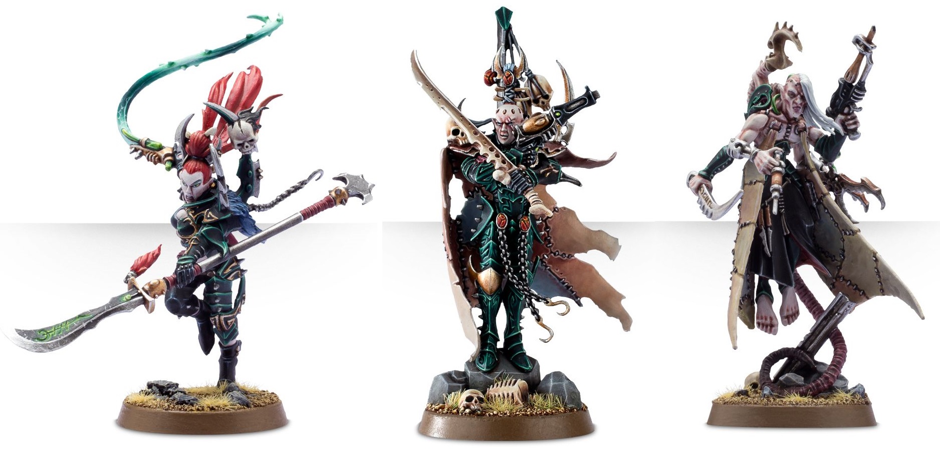 Este mes el pack consiste en tres personajes genéricos pero que tienen el indudable carisma Drukhari que los hace a la vez mortales y sensuales. Súcubo, Arconte y Hemónculo: