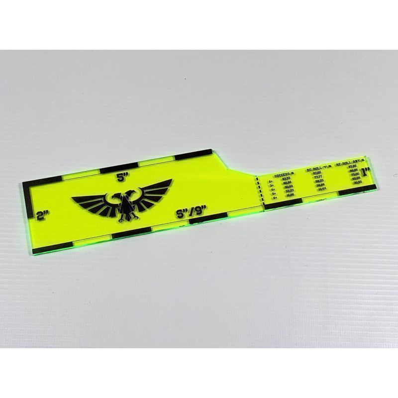 Y por si fuera poco, una regla modelo Xandre de Bandua Wargames con las medidas necesaria en Novena Edición de Warhammer 40k. El logo será el de los Orkos, no el imperial: