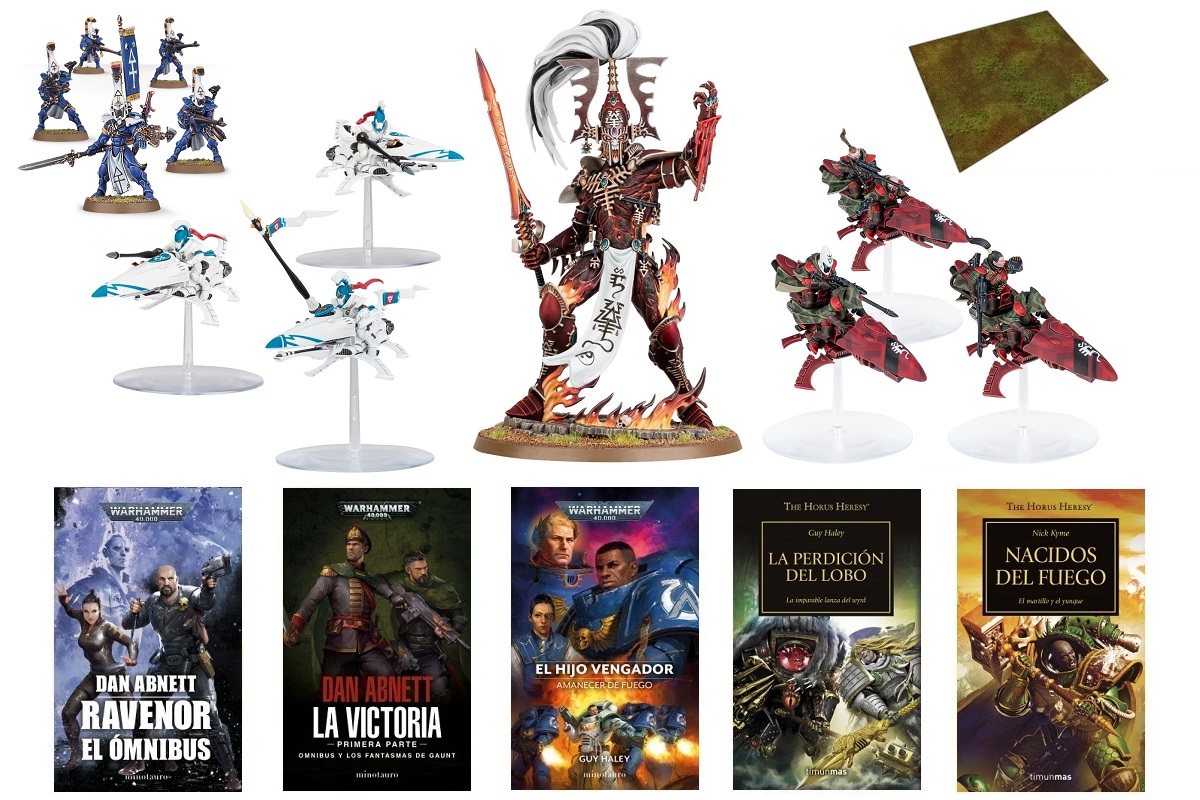 Recordemos los premios de este sorteo. Gracias al patrocinio de Minotauro-TimunMas es posible ofrecer un pack de novelas en formato físico por valor de 100€. El ganador podrá seleccionar las novelas de entre las que tienen en su catálogo destinado a la Black Library en español. Por ejemplo, un posible pack sería el siguiente: