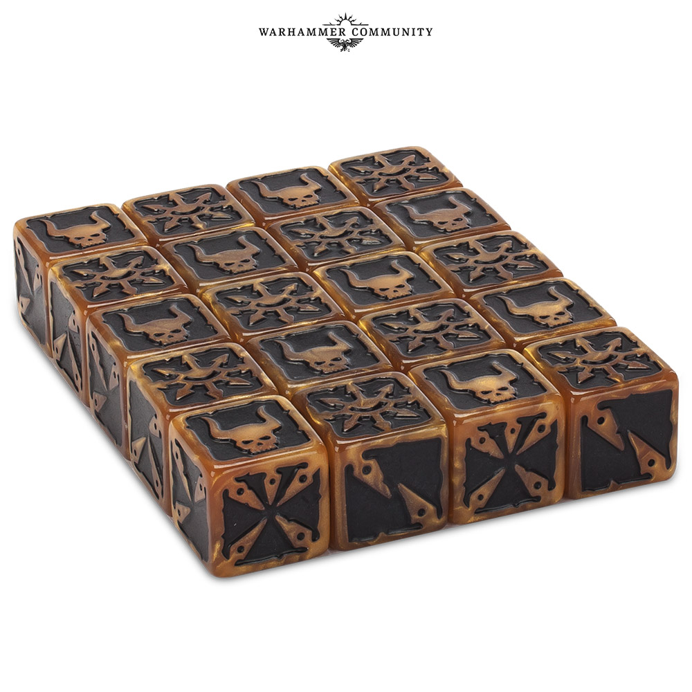 Y para terminar, los dados personalizados de Marines Espaciales del Caos: