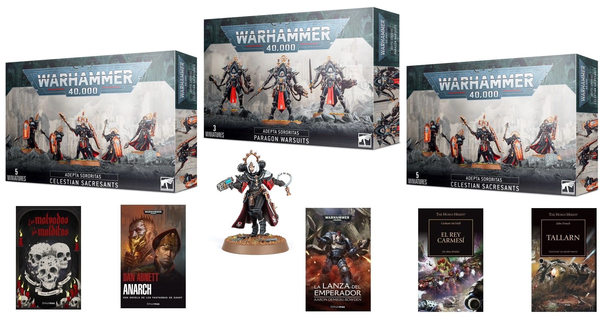 Y a eso hay que añadirle de la mano de Bandua Wargames el plato fuerte para los aficionados de las Adepta Sororitas: Exoesqueletos Ejemplares o Paragon, dos cajas de Celestes Sacrosantas y la Hermana Palatina.