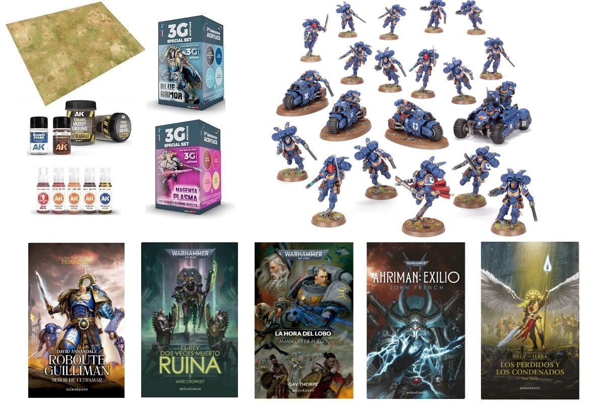 Gracias al patrocinio de Minotauro-TimunMas es posible ofrecer un pack de novelas en formato físico por valor de 100€. El ganador podrá seleccionar las novelas de entre las que tienen en su catálogo destinado a la Black Library en español. Por ejemplo, se podrían elegir algunas de las siguientes: