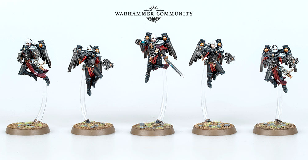 – 5x Seraphim (cada una con una peana redonda Citadel de 32 mm y un soporte para voladores)