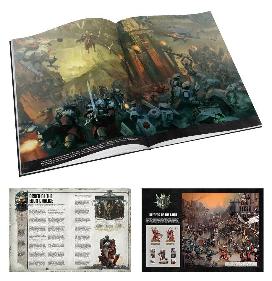 Adepta Sororitas (libro de 80 páginas en tapa dura) con una cubierta exclusiva t en cuyo interior encontrarás: