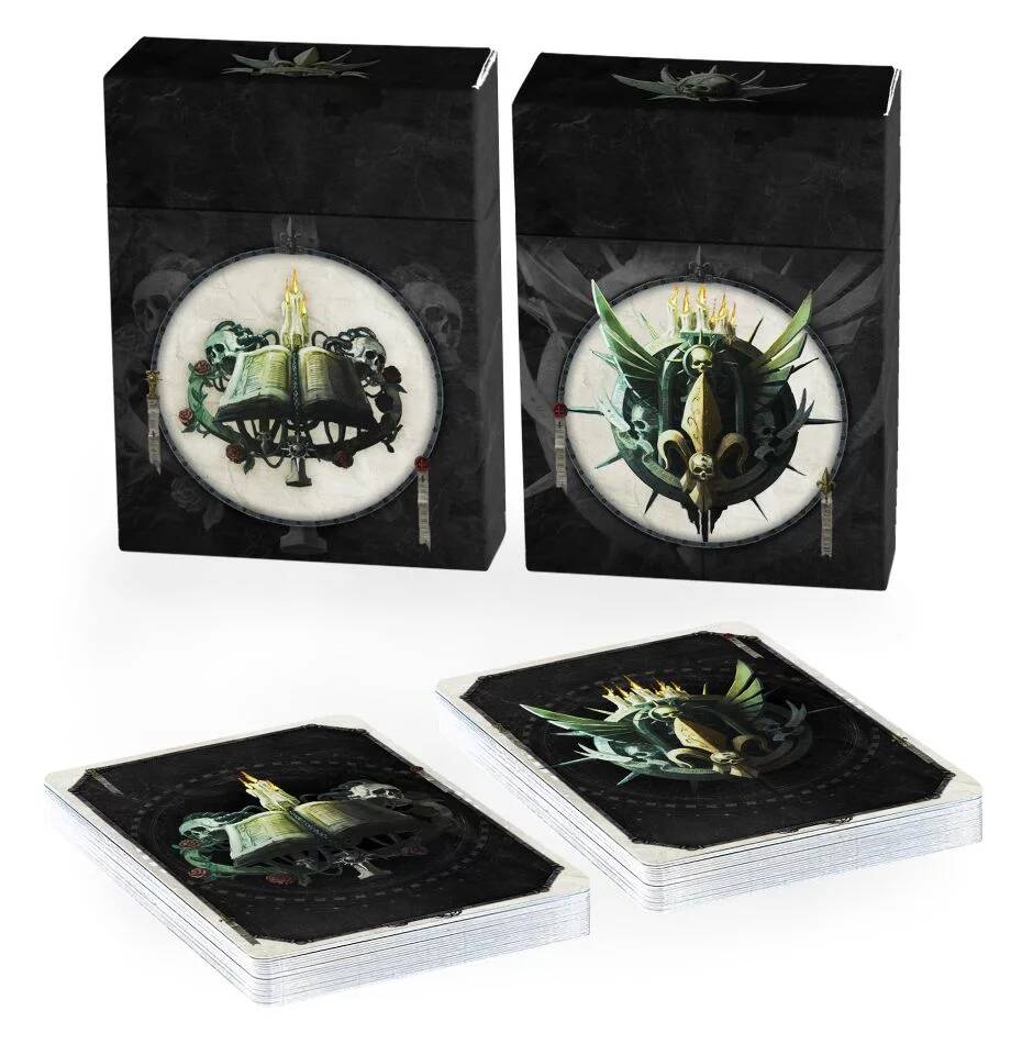 – Reglas de todo el ejército que te permiten reunir tu colección de miniaturas de Adepta Sororitas en una cruzada imparable de fe– Tarjetas de datos de las Adepta Sororitas (80 cartas: 36 objetivos tácticos, 38 estratagemas y 6 Ritos Sagrados)