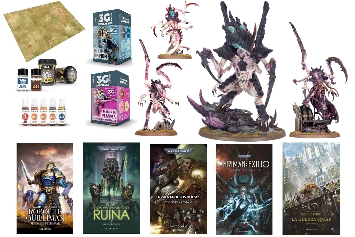 Gracias al patrocinio de Minotauro-TimunMas es posible ofrecer un pack de novelas en formato físico por valor de 100€. El ganador podrá seleccionar las novelas de entre las que tienen en su catálogo destinado a la Black Library en español. Por ejemplo, se podrían elegir algunas de las siguientes: