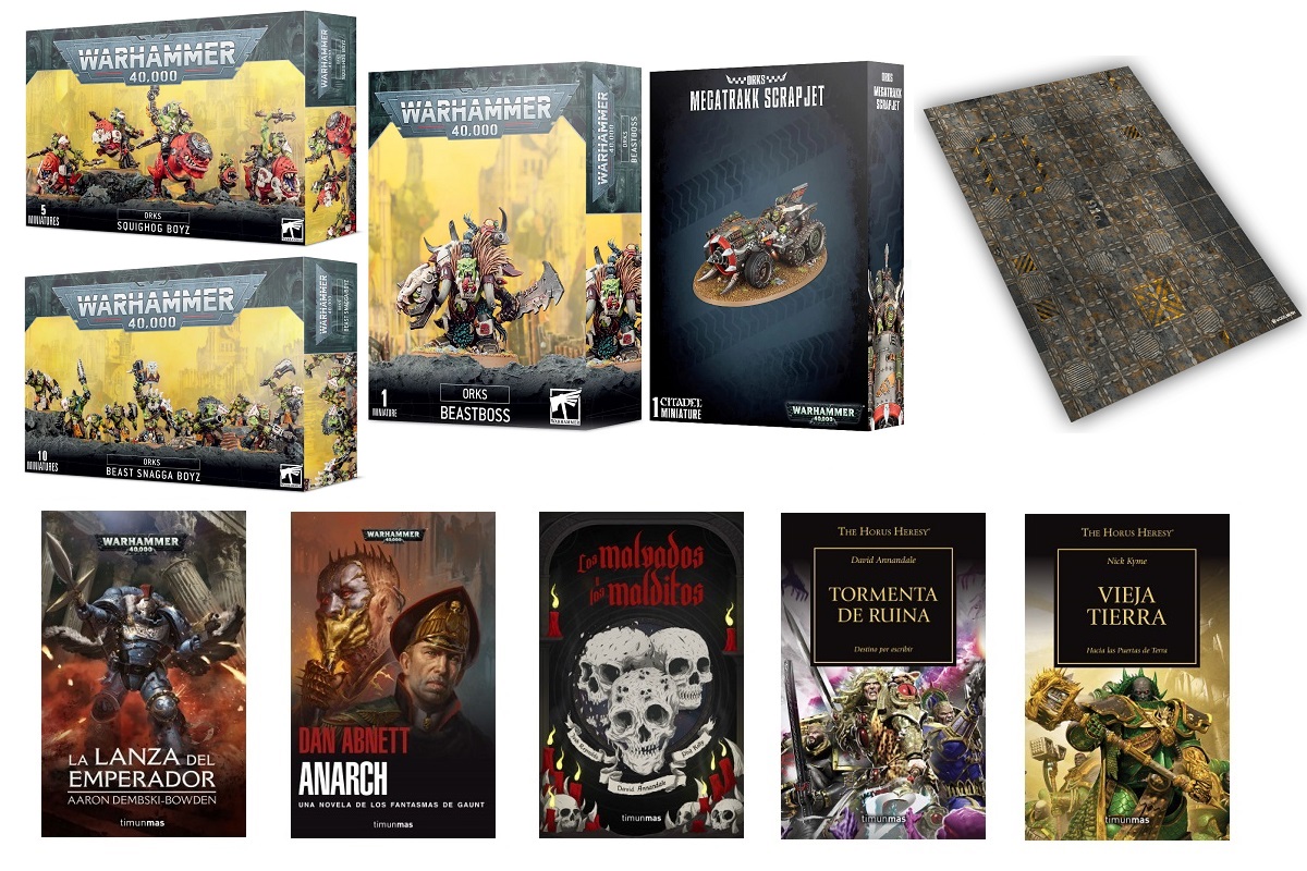 Recordemos los premios de este sorteo. Gracias al patrocinio de Minotauro-TimunMas es posible ofrecer un pack de novelas en formato físico por valor de 100€. El ganador podrá seleccionar las novelas de entre las que tienen en su catálogo destinado a la Black Library en español. Por ejemplo, un posible pack sería el siguiente: