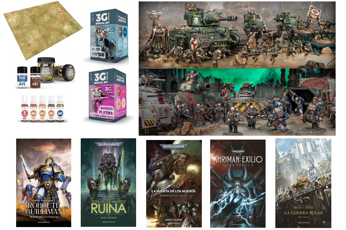 Gracias al patrocinio de Minotauro-TimunMas es posible ofrecer un pack de novelas en formato físico por valor de 100€. El ganador podrá seleccionar las novelas de entre las que tienen en su catálogo destinado a la Black Library en español. Por ejemplo, se podrían elegir algunas de las siguientes: