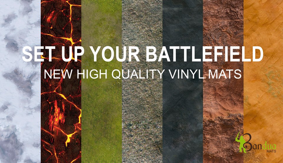 Gracias a los chicos de Bandua Wargames y su nueva gama de tapetes de vinilo a 49,95€, podemos ofrecer un tapete a elegir de entre sus diseños de forma gratuita a uno de vosotros. ¡Estad atentos al correo a eso de las 21:00!