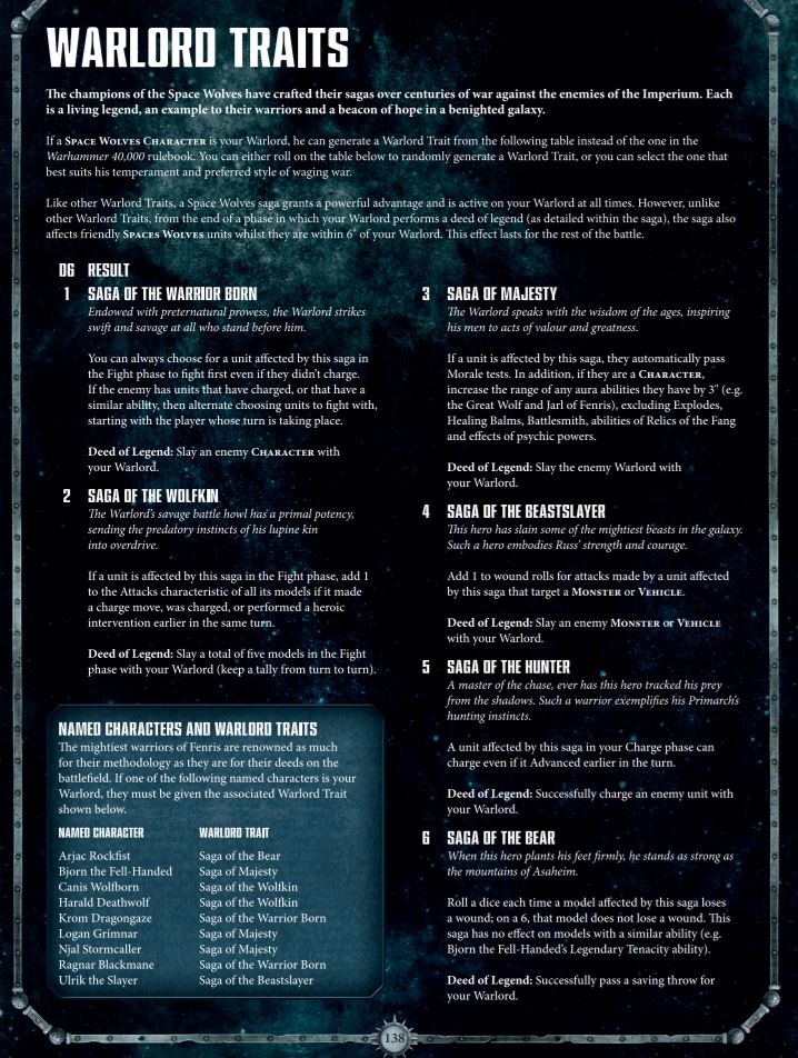 Quienes vayáis a comprar el Codex: Lobos Espaciales en inglés, tenéis ya disponible la página 138 al completo que sustituye a la que trae el libro impreso. Las sagas se modificaron para mejorarlas justo después de enviar los Codex ingleses a imprenta.