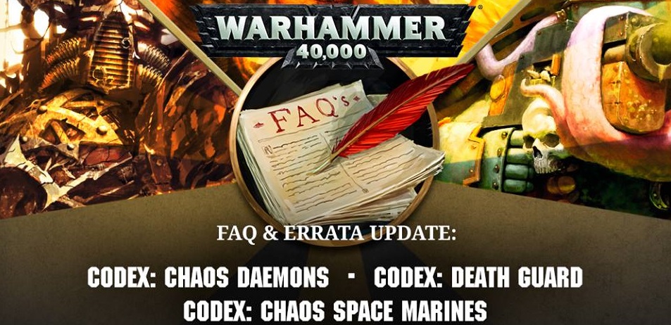 Las FAQs están calentitas, y fundamentalmente lo que hacen es eliminar todos los raros casos en los que había unidades con DAEMON como palabra clave de facción para pasarla a palabra clave normal. Así que Arrasadores y otras excepciones pasan a la normalidad del resto de Demonios externos al Codex: Demonios del Caos.