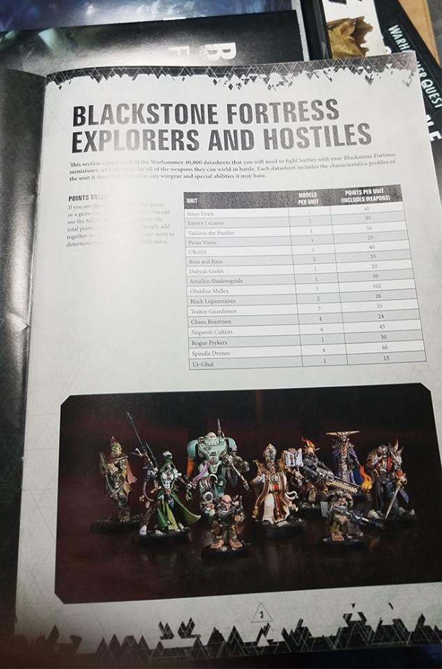 Filtados valores en puntos para 40k y más detalles de Blackstone Fortress
