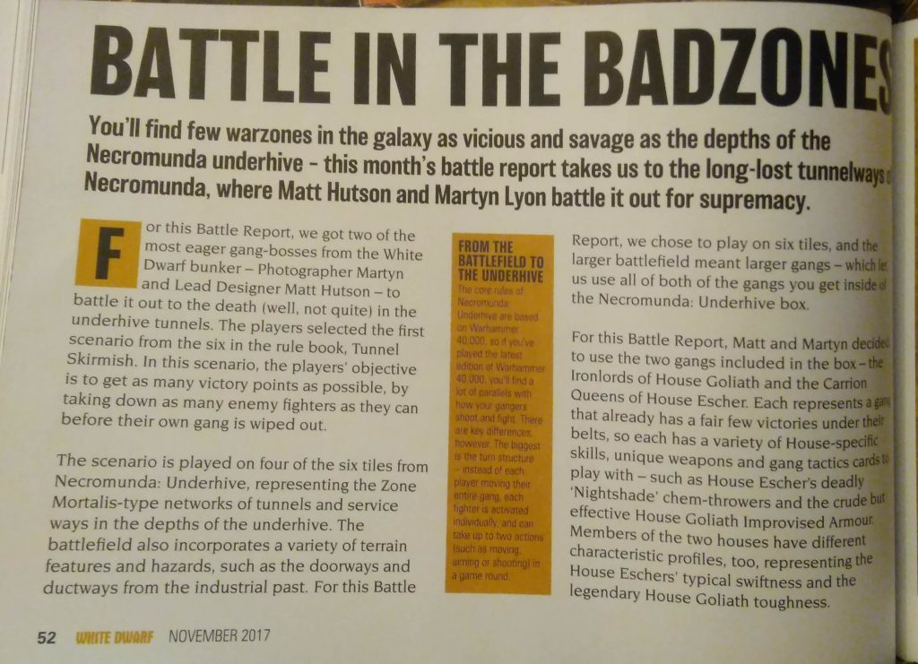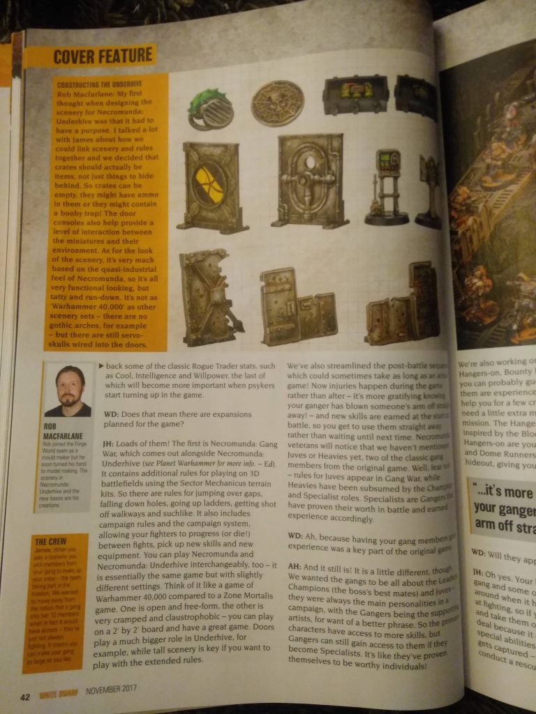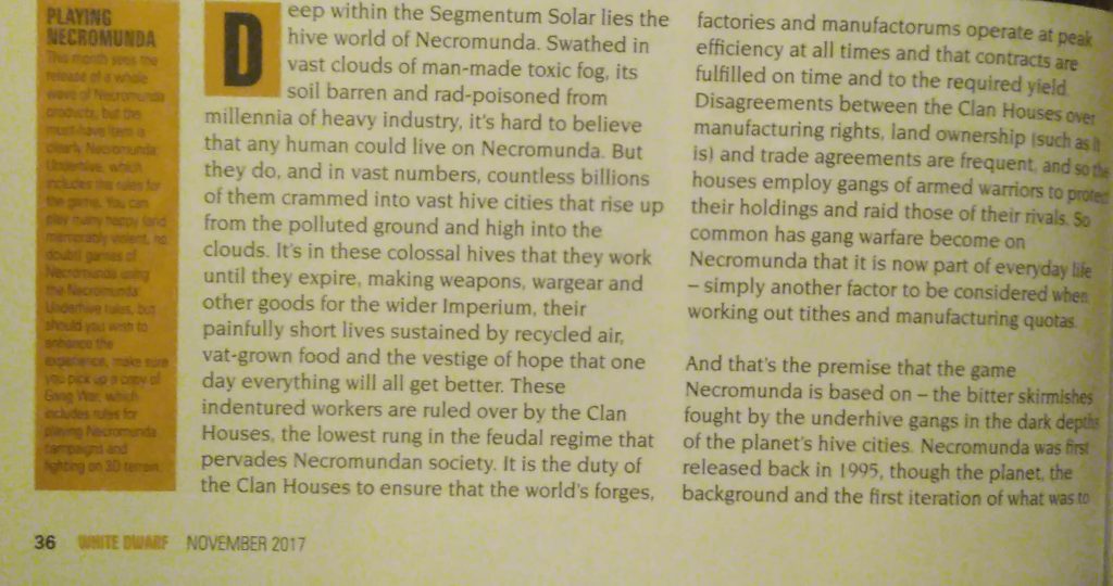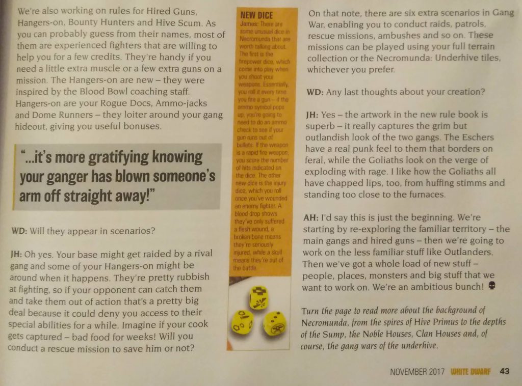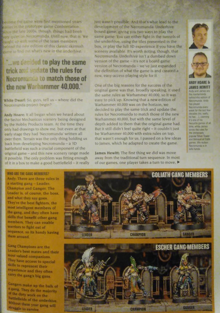 Muchas páginas y muy interesantes, que enseñan más información de la White Dwarf sobre la esperada caja Necromunda: Underhive.