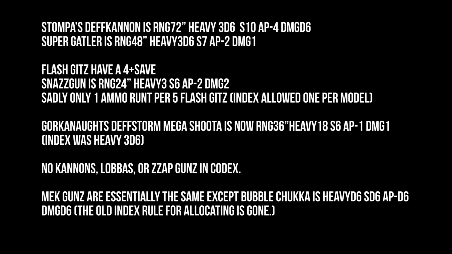 No es que sea muy frecuente usar miniaturas que cuesten casi 1000 puntos, pero el Pizoteador recibe cariño en forma de más disparos con dos de sus armas principales. Habrá que ver cómo se queda de coste en puntos. Hablando de vehículos grandes, los Gorkanautas ven mejorado su dakka con un disparo fijo de 18 en vez de 3d6.